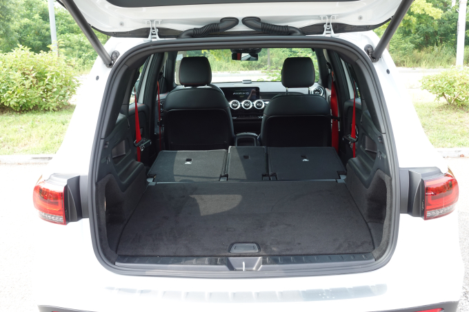 실내는 기존 벤츠와 별반 다를 게 없다. 벤츠가 가지고 있는 고급스러움을 그대로 구현했다. 대시보드 위로 기다란 10.25인치 디스플레이가 놓였고 센터페시아에 터빈 모양의 둥근 송풍구가 자리했다. 운전대 뒤쪽으로 길쭉한 기어레버도 달렸다. 너무나 익숙한 풍경이다. 대신 AMG를 티내기 위해 운전대와 시트, 대시보드 도어에 빨간 스티치로 멋을 내고 안전벨트로 빨간색으로 덮었다. 콤팩트 SUV인데도 공간은 생각보다 여유롭다. GLB는 GLC보다 아래 등급이지만 공간이나 실용성을 따졌을 땐 GLB가 더 위라고 느껴질 정도다. 여유로운 공간은 넉넉한 헤드룸과 낮은 차체 높이에서 나오는데 차를 탔을 때도 좋지만 차를 타고 내릴 때 정말 편하다. 꼭 미니밴을 타는 기분이다.